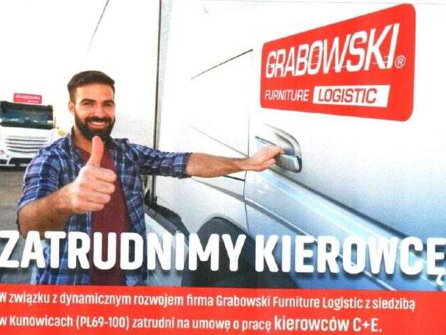 В связи с динамичным развитием компании Grabowski Furniture Logistic расположенной в Куновицах (PL69-100) мы нанимаем на работу водителей C+E.